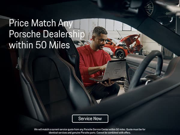 We will match a current service quote from any Porsche Service Center within 50 miles. Quote must be for identical services and genuine Porsche parts. Cannot be combined with offers.